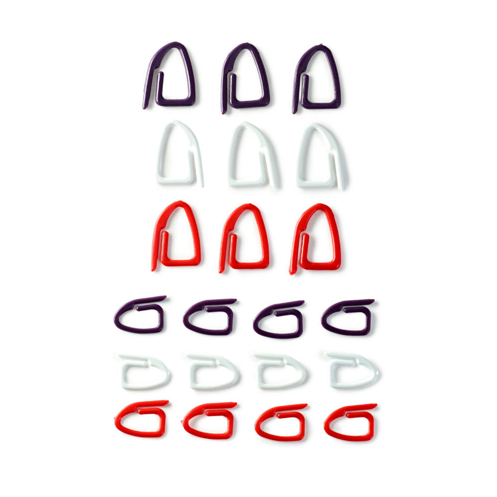 These little Prym stitch markers are a big help when it comes to keeping track of things when you knit. These small plastic clips can be placed gently and easily on the stitch of your choice and make counting stitches and rows easier when knitting. It is a practical aid for all knitting or sewing designs, for increases or decreases and much more. You can just as easily remove them from the stitch to monitor other areas. The pack contains stitch markers in plum red, white and blue. Suitable for thread thickness 2 to 8.