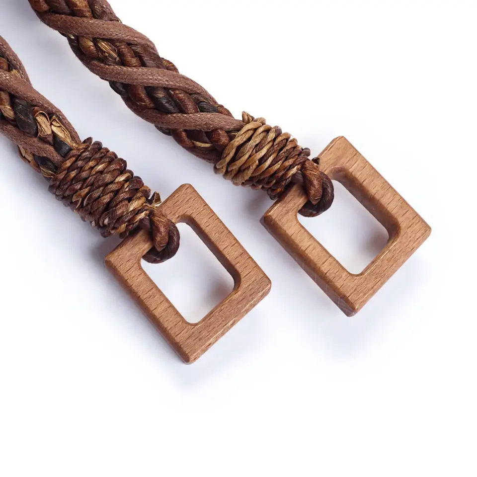 Τα χερούλια τσάντας Madeleine είναι μια πολύ ιδιαίτερα από την Prym, κατασκευασμένα από σκούρο καφέ ανάμεικτες, πλεγμένες ίνες, γνωστές για την υψηλή αντοχή τους. Το υλικό ενισχύεται από ένα καφέ, κερωμένο βαμβακερό κορδόνι – αυτό δημιουργεί επίσης μια μοναδική εμφάνιση. Οι ορθογώνιες ξύλινες θηλιές στο τέλος χρησιμεύουν ως σύνδεσμος για την χειροποίητη τσάντα. Ως εκ τούτου, τα χερούλια τσάντας Madeleine είναι πρωτοπόρα όταν πρόκειται για αυτή τη φυσική εμφάνιση για μια αυτοδημιούργητη τσάντα. Κάθε συσκευασία περιέχει 2 χερούλια.