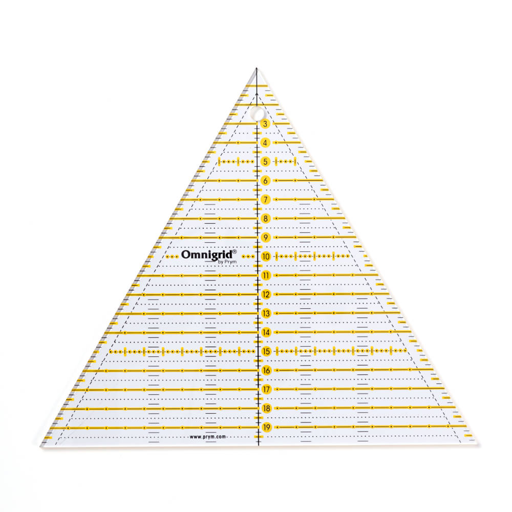 The special Omnigrid® ruler is ideal for all 30 degree and 60 degree patterns in patchwork projects. The durable plastic triangle ruler is easy to use and therefore an indispensable aid for both beginners and advanced users in measuring and cutting triangles, half-triangles, trapezoids and hexagons. Measurements are marked in centimeters and inches, which makes it easy to use patterns in different languages. Includes instruction book for basic cutting techniques!