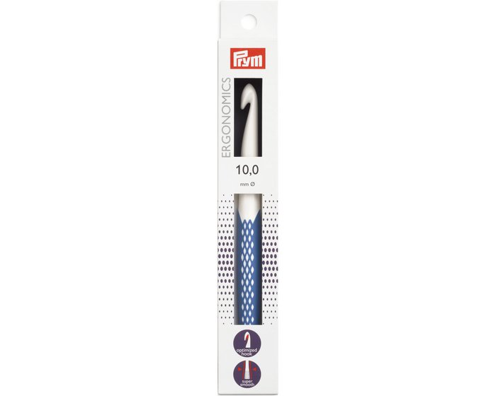 Τα έγχρωμα βελονάκια για μαλλί prym.ergonomics είναι κατασκευασμένα από ειδικά πλαστικά υψηλής ποιότητας και επομένως διατίθενται σε λεπτά ή χοντρά, που κυμαίνονται από 3 mm έως 15 mm. Εξασφαλίζουν ότι μπορείτε να εργάζεστε αβίαστα, χωρίς καταπόνηση στους καρπούς και να είναι άνετα στην υφή. Ο γυαλιστερός άξονας επιτρέπει στις βελονιές να γλιστρούν εύκολα, ενώ το εργονομικό σχήμα της αντιολισθητικής πλαστικής λαβής διασφαλίζει ότι απολαμβάνετε ευχάριστο βελονάκι χωρίς κόπωση. Οι λαβές σε διάφορα φρέσκα χρώματα σάς βοηθούν να προσδιορίσετε το απαιτούμενο νούμερο, ώστε το βελονάκι να μπορεί να ανακτηθεί γρήγορα από το καλάθι εργασίας σας. Το 2014 κέρδισαν το Red Dot Design Award.