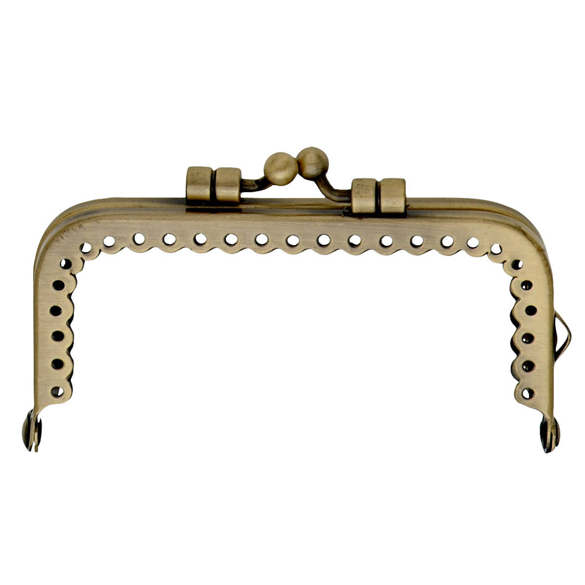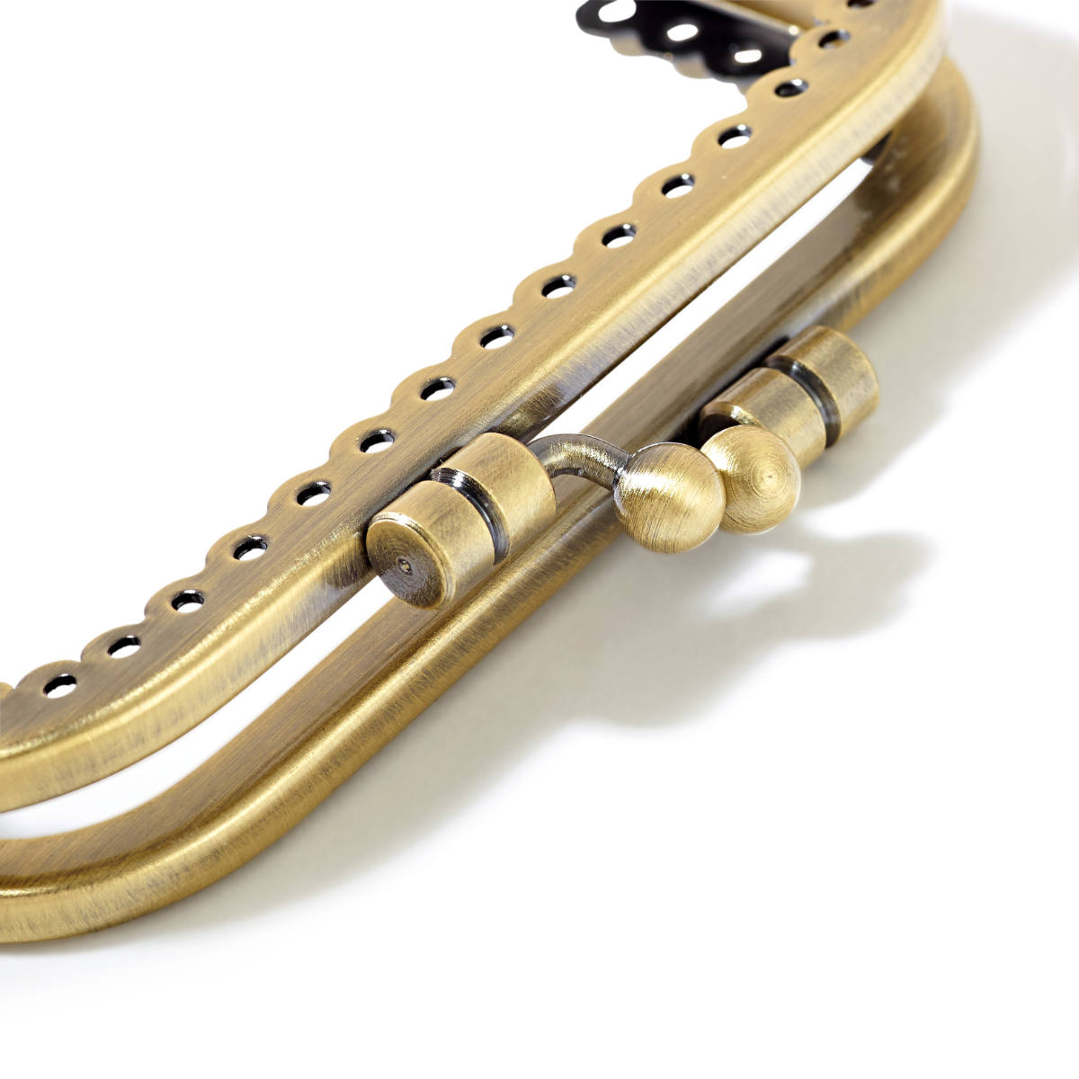 Αυτό το κούμπωμα προσφέρει ασυναγώνιστη δημιουργικότητα και δεν αφήνει τίποτα το ανεπιθύμητο. Το μπρονζέ χρώμα έχει κομψή εμφάνιση καθώς ειναι βουρτσισμένο, με υψηλής ποιότητας μέταλλο. Ο αρχικός σχεδιασμός του εύκαμπτου πλαισίου ξεχωρίζει με δύο δακτυλίους και στρογγυλές κεφαλές. Ένα μικρό άγκιστρο στο πλάι επιτρέπει τη στερέωση της τσάντας να ενισχυθεί με μια λεπτή αλυσίδα. Οι οπές ραφής για τη στερέωση στο ύφασμα είναι προ-τρυπημένες και εξασφαλίζουν υψηλή ομοιομορφία της ραφής. Και για να ξεκινήσετε αμέσως, το πακέτο παρέχει οδηγίες ραψίματος με περίγραμμα κοπής.
