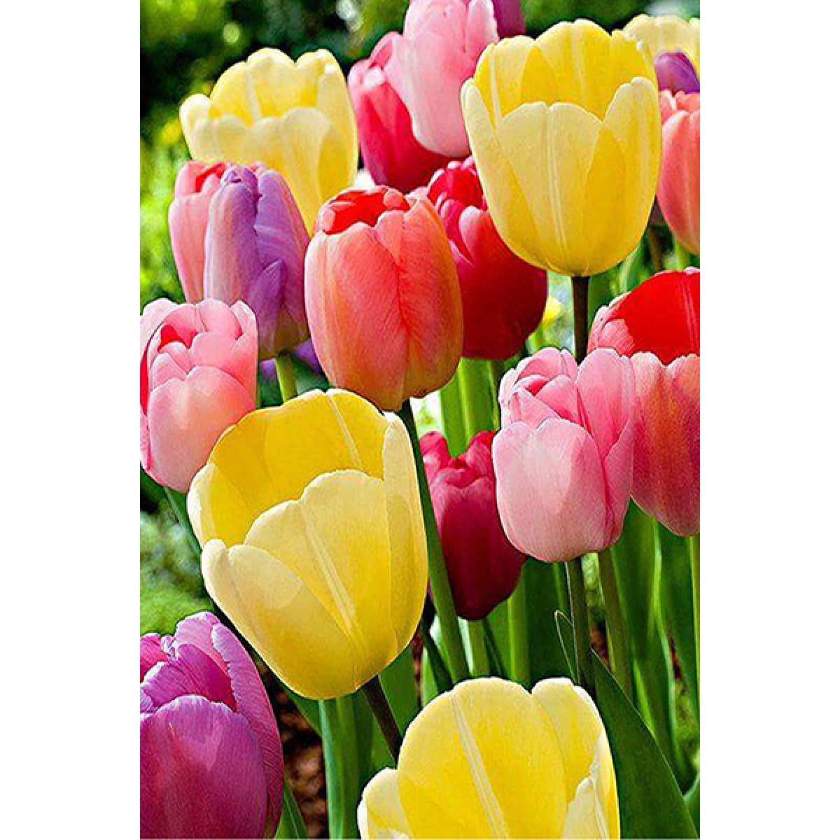 Ψηφιδωτό Μωσαϊκό με ψηφίδες τύπου διαμαντάκια και σχέδιο τουλίπες σε διάφορα χρώματα,κίτρινο , 20cm x 30 cm.